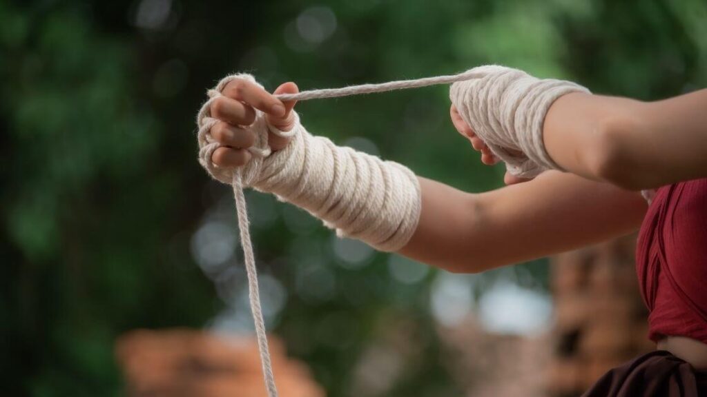 O Muay Thai usa o corpo para imitar armas de guerra. Mãos se tornam espadas e punhais, panturrilhas e antebraços são endurecidos no treinamento para servir de armadura contra golpes, pernas e joelhos se tornam machados e cotovelos podem derrubar oponentes como labirintos pesados ou martelos.